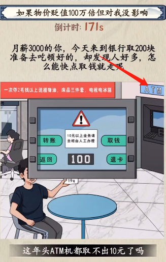 1、点击去ATM取钱。