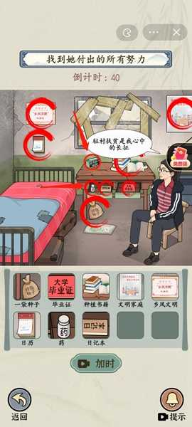 就你会玩文字玩法十分有趣,每一关都有不同的谜题等待玩家去解决,喜欢推理的小伙伴千万不要错过,下面小编也为大家带来了大山的女儿这一关的答案,赶紧来看看吧!就你会玩文字大山的女儿通关攻略1、点击墙上面的两张奖状,桌上面的书,日历,桌下面的种子,~