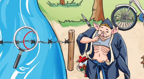 4、八戒饿出排骨,手里拿着火腿肠钉耙,水壶是夜壶。