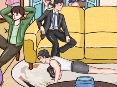 5、点击茶几,点击茶几下的人。