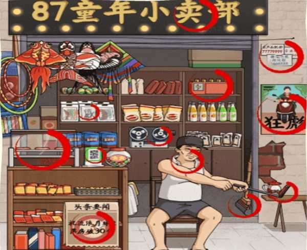 《冲刺100关》是一款结合了热门梗和休闲益智元素的游戏,让玩家在体验游戏的同时也能了解到一些有趣的文化知识。游戏中有许多有趣的关卡等待着玩家去挑战,每一关都有着不同的难度和玩法,让人充满期待。冲刺100关童年铺子怎么过这一关需要找出图片当中~