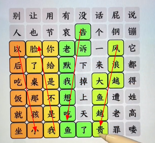 就你会玩文字是一款好玩的烧脑解谜游戏,玩家需要根据提示寻找线索,完成任务,非常考验玩家的眼力哦,不知道找经典台词这一关怎么过的小伙伴快来看看下面的攻略吧!就你会玩文字找经典台词通关攻略 以后吃饭就坐小孩那桌我是不是给你脸了告诉老墨我想吃鱼了~