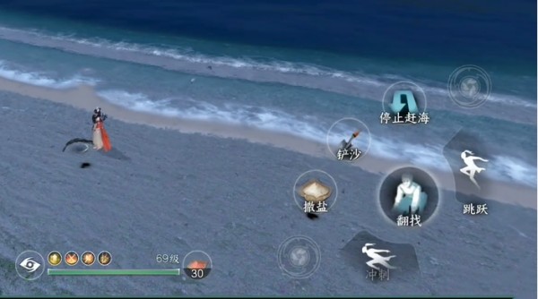 2、到达位置后点击赶海,可以进行冲刺以及跳跃。