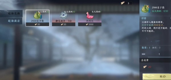 1、玩家可以使用挖到的蛏子兑换物品,包括2500交子袋、5个静息凝丹以及烈烈鸟。