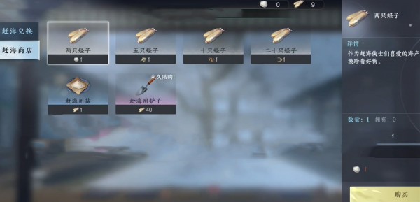 2、可以在赶海商店中购买蛏子以及赶海用铲子道具。