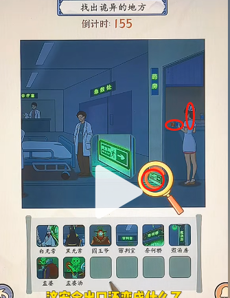 1、就你会玩文字病房惊魂,点击关灯,将画面中的三个白大褂依次点击,然后点击绿色的字牌。
