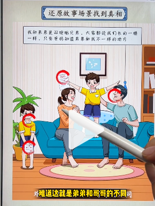 2、点击弟弟的脸,衣服,站的位置,哥哥的衣服。