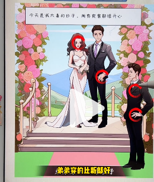 3、点击新娘的脸,哥哥和弟弟的手,弟弟的西装。