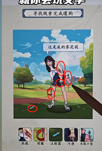 就你会玩文字是十分有趣的推理解谜小游戏,玩家的任务就是找出隐藏在画面中的各种物品,完成逻辑推理,下面小编也带来了兼职遛狗的攻略,快来看看吧!就你会玩文字兼职遛狗通关攻略1、点击胳膊上的抓痕,手里的抓狗网,地上的蛇皮袋,脚上的拖鞋,脖子上的学~