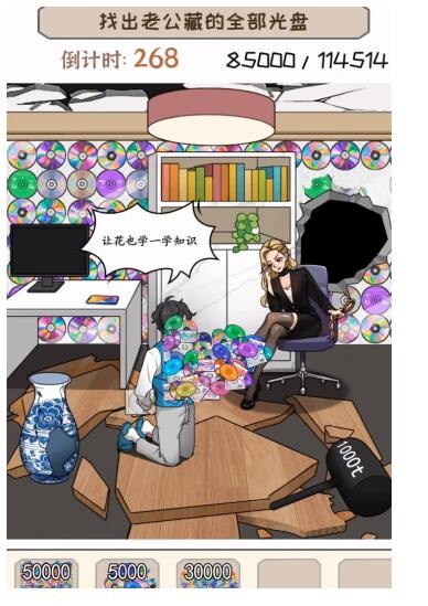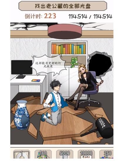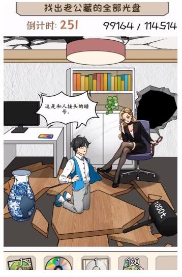 文字真相有各种有趣的关卡,玩家可以一一挑战,找到解谜的快乐,下面小编也带来了私密光盘的攻略分享,赶紧来看看吧!文字真相私密光盘通关攻略找出老公藏的全部光盘1、这一关藏起来的光盘很多,花瓶、地板、墙面、书架和天花板比较多 2、男角色的全身上下~