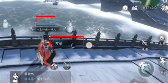 3.然后小伙伴们来到桥上和任务的重要任务【雪姑娘】进行对话。