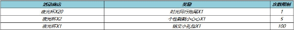 3、集齐20个夜光杯即可兑换一个时光同行拖尾。