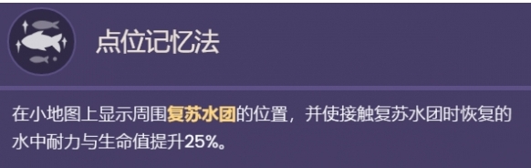 可以通过地图观察复苏水团位置,触碰后可恢复水中耐力,同时生命值将会提高25%。