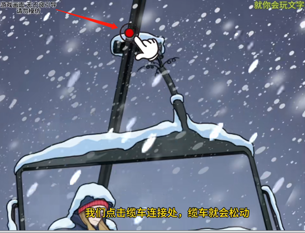 就你会玩文字是十分有趣的推理解谜小游戏,玩家的任务就是找出隐藏在画面中的各种物品,完成逻辑推理,下面小编也带来了缆车困境的攻略,快来看看吧!就你会玩文字缆车困境通关攻略1、点击冻在栏杆上面的手,女生通红的脸,旁边的黑影,正在下着的雪。 2、~