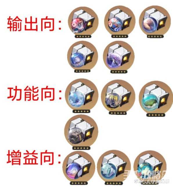 具体到每个角色,由于一个角色可能适配多个位面饰品的情况,这里只考虑只做好该角色的本职工作,该打输出的堆输出,该当奶妈的堆生命……至于其他需要保生存或者是当副c堆输出的情况需要另外讨论,以此制作了以下全角色位面饰品适配: