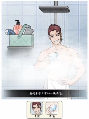 2、左边男人:表情、香皂。