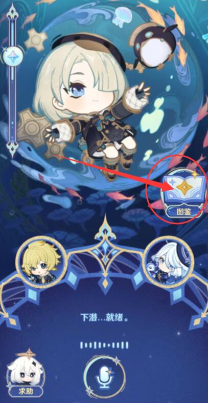 2、解锁5位角色的曲目,点击【图鉴】。
